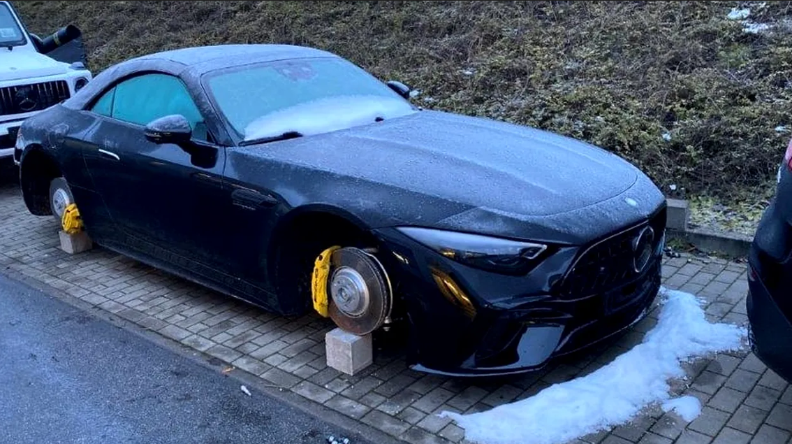 Tri remek dela savremene evropske automobilske industrije, tri Mercedesova AMG-a su osvanula na placu nemačkog distributera u neuglednom položaju. Naime, pošto su razbojnici odneli točkove s pomenutih vozila, ova su ostavljena potrbuške na betonskim blokovima. Zlodelo se dogodilo u bavarskom gradiću Koburgu, koji skoro da i može da se po broju stanovnika meri s našim Paraćinom. O tome je izvestio nemački list Bild, pa i mi saznadosmo.