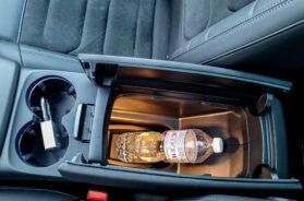 Pored centralne konzole izmenjena je i središnja, gde do izražaja dolazi nova znatno manja komanda automatskog menjača. Radi se zapravo o sklopki nazvanoj e-Toggle, koju danas pronalazimo u bezmalo svim modelima grupacije, pod uslovom da se radi o automatskom menjaču. Prisetite se, ta sada bivša ručica mi deluje znatno privlačnije, osim toga nalazim da se njome lakše manipuliše. Sad se sve radi jednim prstom, sklopku treba pogurati ili povuči, odnosno pritisnuti dugmiće pored. Kako je znatno skromnijih dimenzija dobio se prostor za platformu za bezično punjenje smartfona i još jedno poveće udubljenje, zgodno za isprazniti džepove. Sitnice se mogu odložiti i u velike pregrade u vratima, odnosno ogroman hlađeni boks između sedišta, koji je ujedno i oslonac za laktove.
