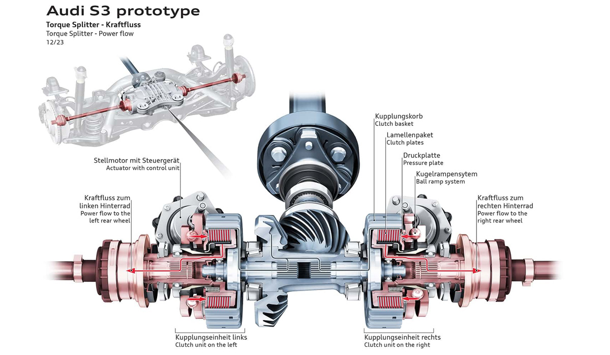 Glavno tehničko ažuriranje bilo je pojavljivanje sistema Torque Splitter na zadnjoj osovini. Već je poznat iz još snažnijeg modela Audi RS 3 i uključuje pojedinačno ugrađene spojnice umesto tradicionalne, što omogućava da se kontroliše vektor vuče, prenoseći do 100% obrtnog momenta koji se isporučuje na zadnju osovinu na svaki od točkova. Audi RS 3 čak ima i drift režim, ali njegovo prisustvo u ažuriranom S3 još nije objavljeno.