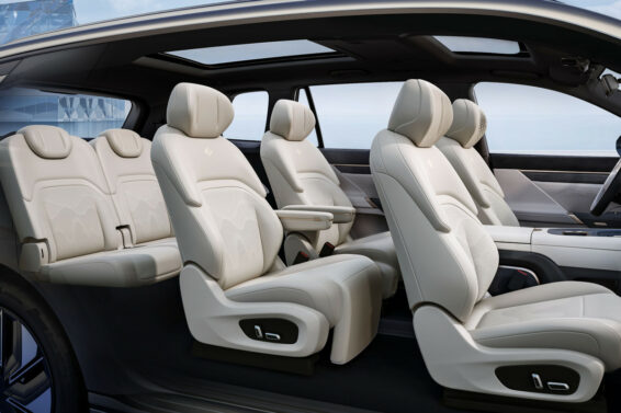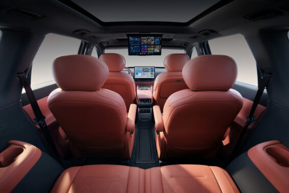 Putnici pozadi imaju svoj ekran za zabavu – pričvršćen je za plafon. Sedišta u drugom redu imaju preklopne oslonce za noge.