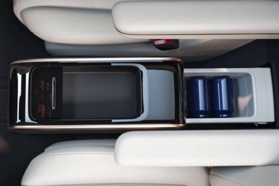 Ali glavna karakteristika unutrašnjosti je uvlačenje „postolja“: skriveno je ispod kutije naslona za ruke, koja se nalazi između prednjih sedišta. Na vrhu ovog „ormana“ nalazi se odeljak za male stvari, a na kraju frižider na izvlačenje.