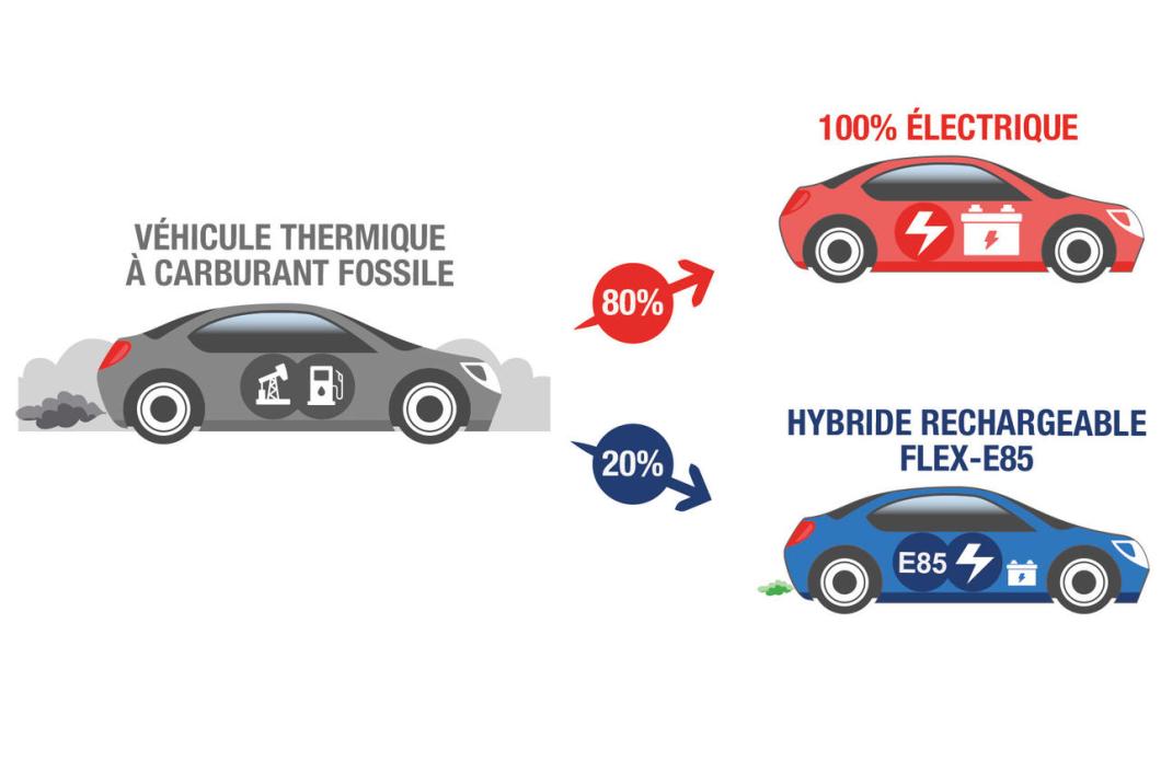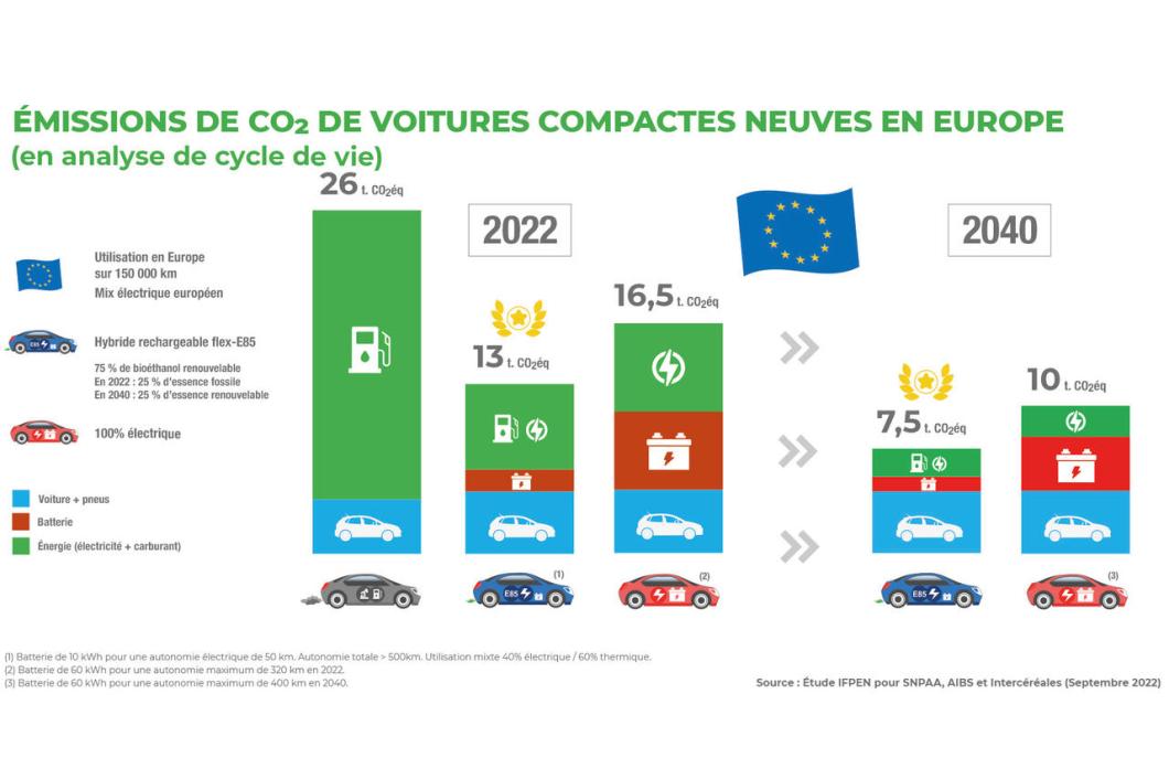 „Modeli pokretani obnovljivim bioetanolom zamišljeni za 2035. ne bi bili samo sa termičkim motorom. Svi bi oni bili plug-in hibridi. Prema studiji IFPEN objavljenoj 2022. na inicijativu SNPAA, njihova manja baterija, dakle manje zagađujuća za proizvodnju, čak bi im omogućila da ispuštaju manje CO2 od čisto električnog ekvivalenta tokom čitavog životnog ciklusa od 150.000 km.