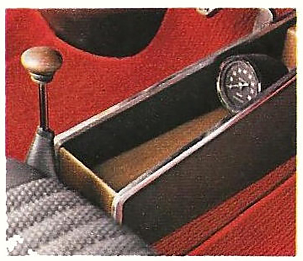 Ispred ručice menjača je obično mesto koje služi za odlaganje sitnica, poput cigareta, komadima bageta (ipak je francuski automobil tema), a tu na kraju svega sedi taj prastari mali obrtomer.