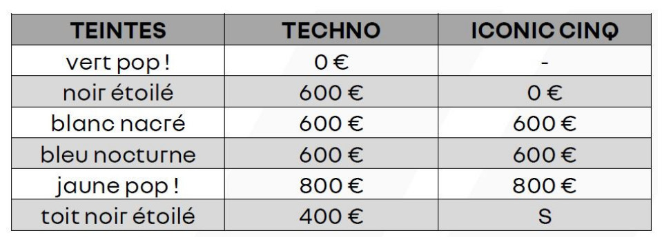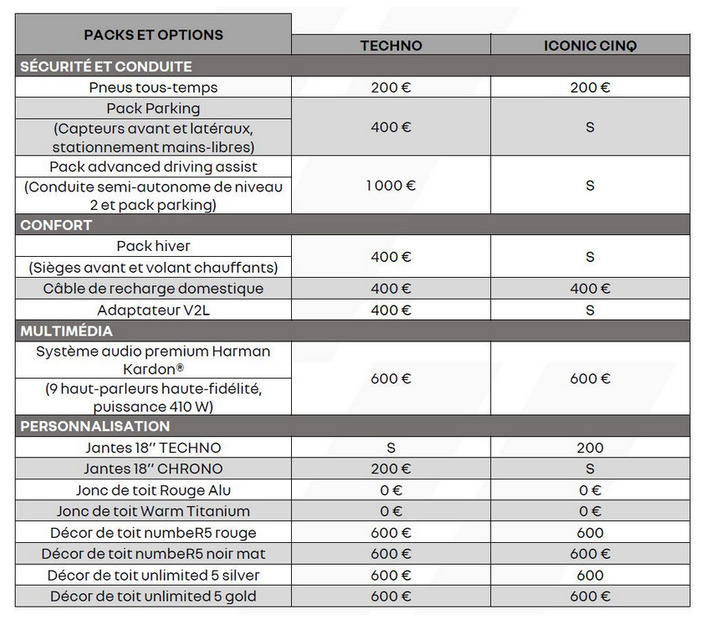 Renault 5, da tako kažemo, nije opterećen složenim asortimanom. Dostupna su samo dva nivoa opreme i to Techno i Iconic Five. Na vrhu ponude se nalazi verzija R5-ica s multimedijalnim sistemom OpenRlink sa planerom ruta, indikatorom punjenja na haubi, toplotnom pumpom, automatskim klima uređajem, pa čak i ukrasnim nalepnicama. Za sada nisu poznati potpuni podaci u vezi opreme po konkretnom paketu.