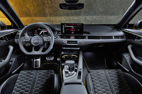 Kabina je takođe velikodušno ukrašena žutim detaljima i umecima od alkantare. Na centralnoj konzoli pojavila se pločica sa serijskim brojem jubilarnog primerka, a digitalna instrument tabla je dobila poseban režim sa belo iscrtanim skalama tahometra i brzinomera.