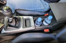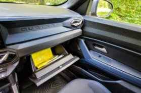 Ručica menjača je tamo gde smo navikli da bude, ne i automatska ručna kočnica, kod Dustera je pri dnu komandne tabli, s leve strane upravljača. Po otvaranju vrata, automatski se aktivira, odnosno dezaktivira po polasku. Praktični aspekt enterijera je za svaku pohvalu, impresioniraju ogromne police na vratima i pregredak za rukavice ispred suvozača, dok pri dnu centralne konsole pronazimo platformu za bežično punjenje smartfona.