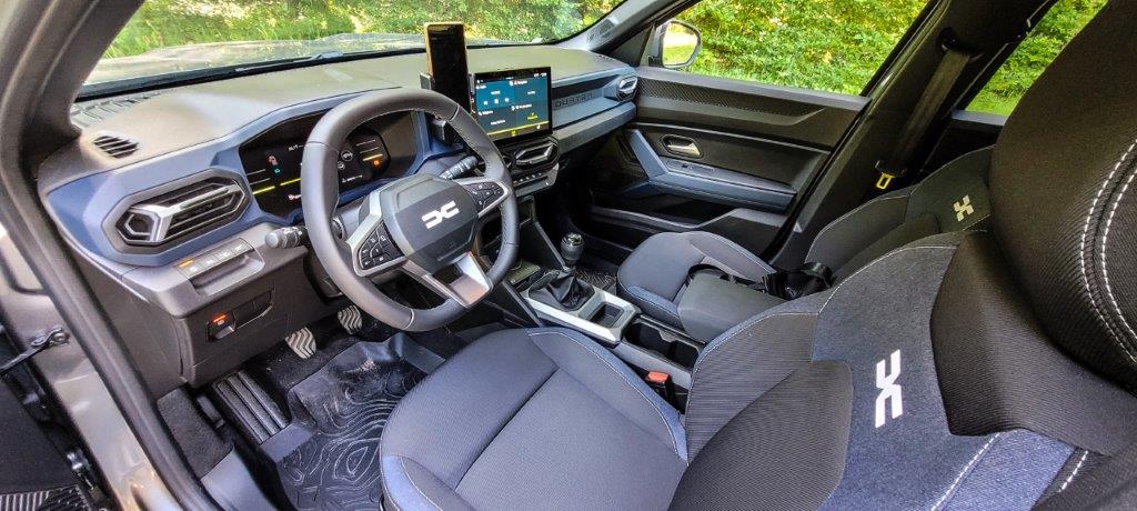 Kao što se moglo očekivati i Dacia je pristupila digitalizaciji, izuzmemo li osnovni završni nivo instrument tabla je u vidu ekrana od 7 inča, dok je centralni ekran za multimedijalni sistem dijagonale 10,1 inča. Blago je zaokrenut ka vozaču, dok su ispod njega fizičke komande i prekidači u vezi klima uređaja.