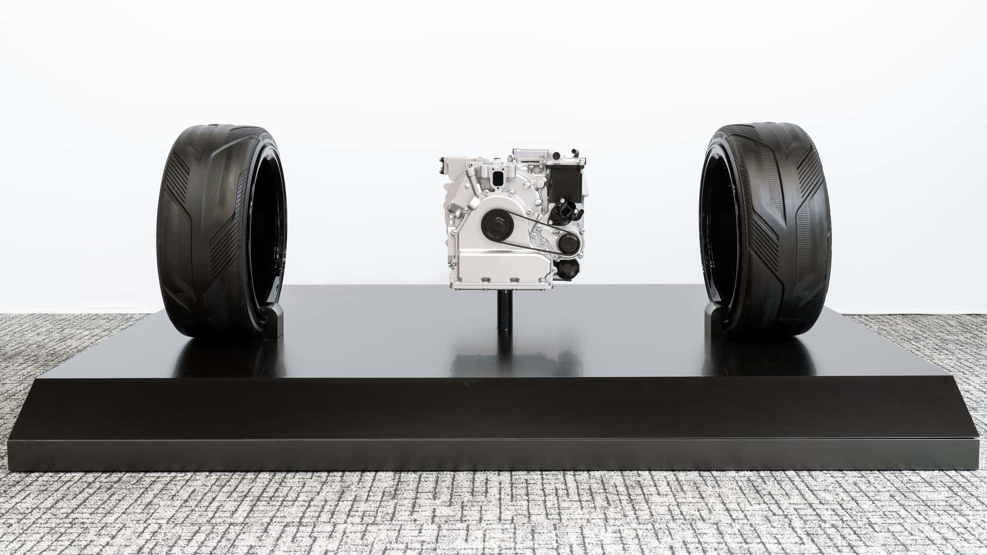 „Ova konceptualna jedinica je opremljena sa dva uzdužno postavljena rotirajuća cilidra za proizvodnju energije, omogućavajući veće napajanje i ostvarujući niske proporcije težišta. Jedinica takođe ima za cilj da poboljša kontrolu vibracija i smanji emisije povećanjem zapremine. Takođe se razmatra mogućnost upotrebe u sportskim automobilima“.