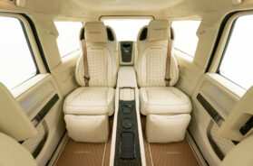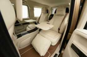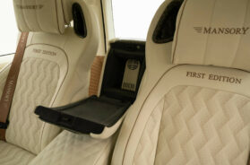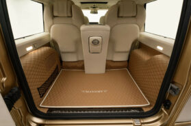 U drugom redu sedišta Mansoryja P900 EWB-a Gold Editiona nalaze se dve luksuzne fotelje, odvojene visokim centralnim delom sa stolovima na izvlačenje, držačima za čaše i frižiderom za piće.