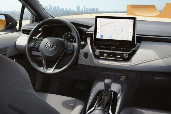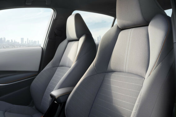 Unutra, Corolla FX ima prednja sportska sedišta sa integrisanim naslonima za glavu i platnenim presvlakama sa narandžastim šavovima, veći ekran za informacije i zabavu (10,5 inča umesto 8 inča), veći ekran za instrument tablu (7 inča umesto 4,2 inča) i policu sa mogućnošću bežičnog punjenja za pametni telefon. Pored toga, paket elektronskih asistenata vozača Toyota Safety Sense 3.0 je uključen kao deo standardne opreme.