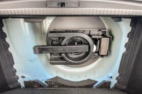 Za pohvalu je praktični aspekt enterijera, sve sitnice i „krupnice „staju u police na vratima, veliki pregradak za rukavice ispred suvozača, boks između sedišta koji ujedno služi i kao naslon za laktove, dno centralne konzole i udubljenja za limenke. Kako i priliči vremenu u kojem živimo predviđen je pregradak za bežično punjenje smartfona, čiji poklopac, kada se otvori, služi kao držač za isti.
