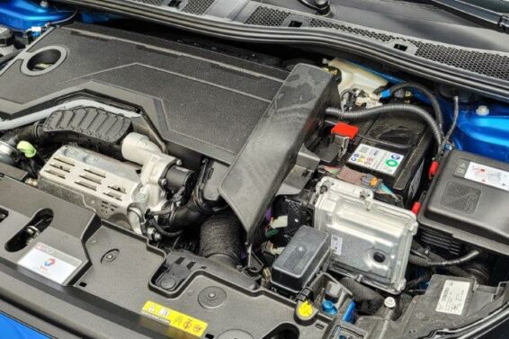 Bez detaljnog ulaženja u kompleksna tehnička rešenja, recimo samo da je u šestostepeni automatski menjač e-DCS6 s dvostrukom spojnicom, težine 75 kilograma, integrisan električni motor od 28 KS, s obrtnim momenom od 55 Nm. Napaja se iz male litijum jonske baterije skromnog kapaciteta od 0,9 kWh (0,432 kWh neto kapaciteta), smeštenoj ispod vozačevog sedišta.