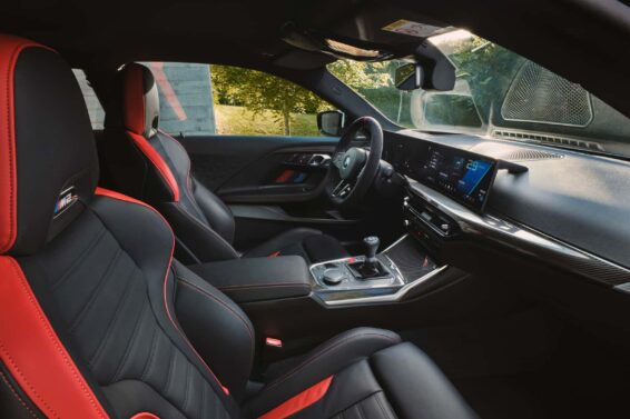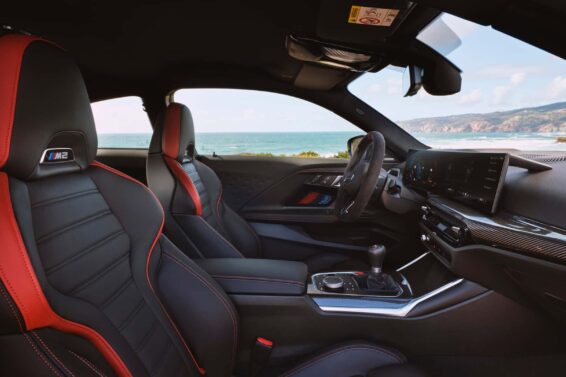M2 takođe preuzima M-ov novi dizajn volana, sa ravnim dnom i crvenim markerom na tački od 12 sati, a kupci mogu pojedinačno izabrati sedišta sa ugljeničnim vlaknima koja su ranije bila dostupna samo kao deo naprednijih opcija.
