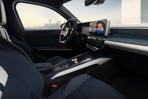 Unutrašnjost sadrži ne samo volan koji je zasečen na dnu, već i novi visoki centralni tunel sa kontrolnim panelom menjača na dugme (osnovna „petica“ ima birač na stubu upravljača).