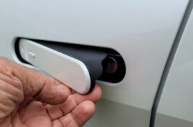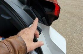 Ovde nema više velikog spojlera koji je krasio bivšu verziju, niti su ručice zadnjih vrata integrisane u gornjem delu istih. Tim bolje jer se takvo rešenje nije pokazalo preterano praktičnim, posebno za decu nižeg uzrasta, kod novog C-HR-a su tamo gde smo navikli da budu. Da, ali sada su ručice pomične, to jest iskoče iz vozila kada se ovo otključa, da bi se po polasku uvukle, uz prilično glasan i „tup“ zvuk.