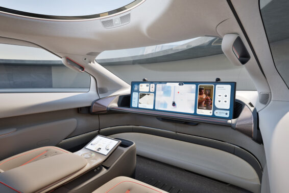 U kabini nema volana ni pedala, ali putnicima je na raspolaganju ekran za zabavu od 43 inča. Može da prikaže sadržaje od interesa za korisnika ili pune informacije o ruti, a sve se to može kontrolisati preko mobilne aplikacije, pomoću koje se poziva taksi. Ekran osetljiv na dodir između sedišta je odgovoran za automatsku klimu, električna sedišta i osvetljenje.