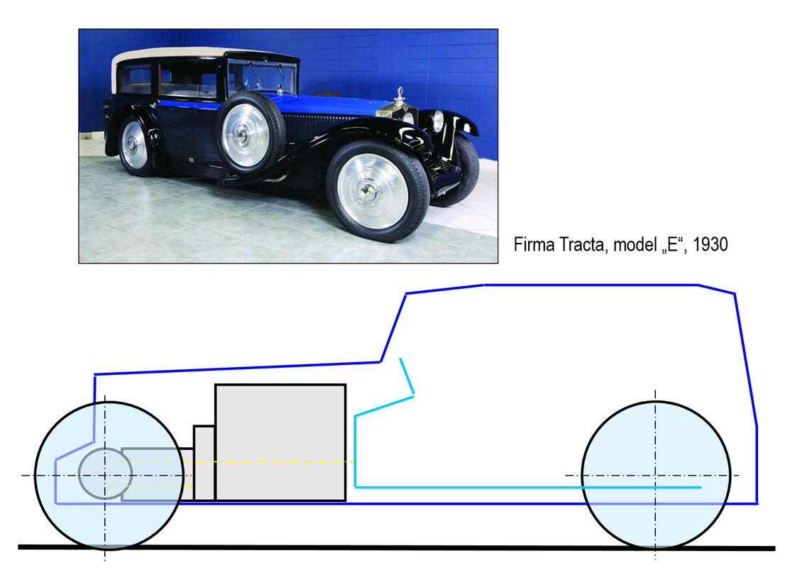 Velike limuzine imale su koncept prednjeg pogona sa uzduzno postavljenim motorom – vidi sliku dole. Ovakav koncept zahtevao je veliki razmak osovina, tako da uopste nije bio praktican.
