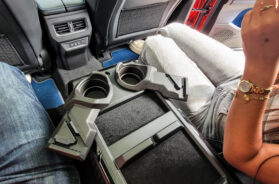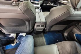 Ovaj nema nekakav mehanički zastor od Sunca, već se po želji zatamni komandom pored unutrašnjeg retrovizora, tako što postane mlečno beo, odnosno providan. Putnicima pozadi je zaista posvećena dužna pažnja, na naslonima za glave pronađoh i nekakve dopunske jastučiće, mekane i prijatne, dok je središnji naslon za laktove pretvoren u mali radni sto.