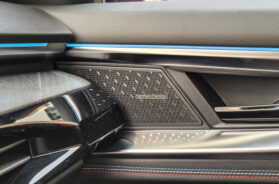 Sve navedeno je prošiveno debelim plavim koncem, koji pronalazimo i na centralnoj ploči i na sigurnosnim pojasevima. Već kao po običaju enterijer je ukrašen LED svetlima čija se boja, po želji može promeniti, odnosno povezana je s izborom programa vožnje (Sport, Eco, Comfort i Perso), koji se biraju povećim dugmetom „Multi Sens“, na donjoj desnoj strani upravljača.