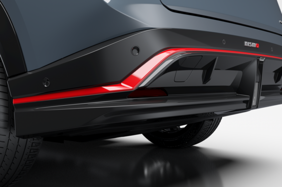 Na dnu branika može se videti značka Nismo sa crvenim „o“ i dodatnim spojlerom, koji se nalazi direktno iznad linije zadnje optike.