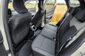 Uz tamnu oblogu na plafonu i zatamljena zadnja stakla ambijent je pomalo sumoran, no raspoloživ prostor na klupi pozadi je dobar, posebno uzevši u obzir skromnu dužinu od 4,34 m. Kao i za putnike napred predviđena su još dva USB priključka, džepovi na poleđini prednjih sedišta, police u vratima i automatski električni podizači prozora (spuštaju se i podižu samostalno jednim pritiskom na prekidač).