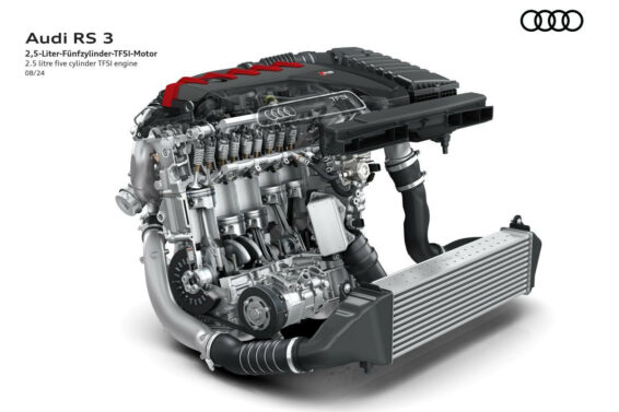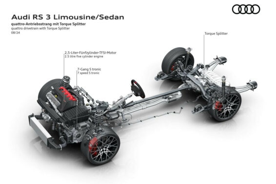 Ispod haube ostaje petocilindrični turbo motor 2.5 TFSI (400 KS, 500 Nm) sa atipičnim redosledom paljenja 1-2-4-5-3, ali nije dobio značajnija poboljšanja. Na mestu su i sedmostepeni automatik S tronic, adaptivno vešanje i pogon na sva četiri točka sa dve spojnice na zadnjem vratilu.