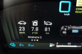 Kao i obično preuzeh ga u fabrici Poissy nadomak Pariza, s punom baterijom, kada na putnom računaru pročitah autonomiju od 48 km. Ništa posebno, iako može biti i nešto veća, u fabrici navode desetak kilometara više. Inače i kada se isprazni, baterija se nikada ne isprazni kompletno, tako da uvek pomaže SUS agregatu, iako na displeju jasno stoji da njen kapacitet iznosi 0 %!