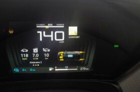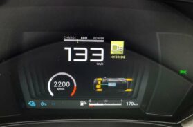 Pređoh tako nekih stotinak kilometara u mešovitoj vožnji, no kada se baterija ispraznila, odnosno kada je putni računa pokazao 0 %, potrošnja se udvostručila, to jest popela se na 7,8 lit. Znajući da pojedini vozači hibrida sa spoljašnjim punjenjem, retko pune bateriju (takav je barem slučaj u firmi kojoj pružam usluge, jednostavno mrzi ih i ne žele da prljaju ruke kablovima), namerno sam i ja preskočio da je napunim prvih 400 pređenih km (dakle samo jedno punjenje po preuzimanju vozila), kada sam zabeležio prosek od 6,8 lit.