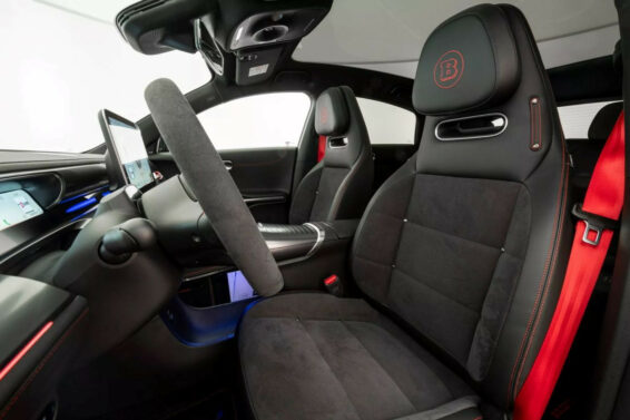 Brabusovi logotipi su se pojavili na volanu i naslonima za glavu. Koriste se i u dizajnu metalnih obloga pedala i pragova, kao i na patosnicama.