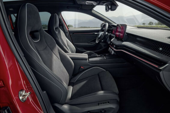 Sportski ambijent unutrašnjosti je takođe naglašen trokrakim volanom sa „Sportline“ logom, dekorom nalik ugljeničnim vlaknima, čeličnim jastučićima za pedale, crnim plafonom i svetlosnim efektima proširenih kontura. Istovremeno, Škoda naglašava očuvanje izuzetne praktičnosti Superba: zapremina prtljažnika liftbeka je 645 litara, a karavana 690 litara.