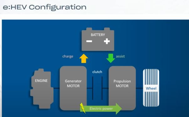 Inače, kod ove vrste hibridnog sklopa, zavisno od uslova vožnje, pogonske točkove pokreću samostalno ili pogonski elektromotor ili termički motor ili, pak, zajedno oba motora istovremeno/paralelno.