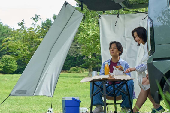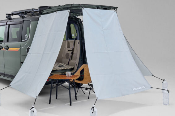Honda N-Box Joy takođe dolazi sa raznim „dodacima“. To uključuje nalepnice za karoserij, razne kuke i mreže. Postoje čak i veliki platneni listovi koji se mogu pričvrstiti na vrata za podizanje – tada se dobija nešto poput šatora.