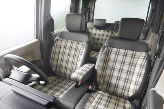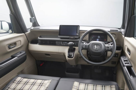 Unutrašnjost se odlikuje vodoodbojnim kariranim presvlakama od tkanine ekskluzivno za N-Box Joy. Štaviše, ovaj materijal pokriva i zadnju površinu naslona sedišta u drugom redu i pod prtljažnika. Postoji dodatna kutija u tovarnom prostoru. Nasloni zadnjih sedišta se mogu preklopiti, što stvara skoro ravan pod.