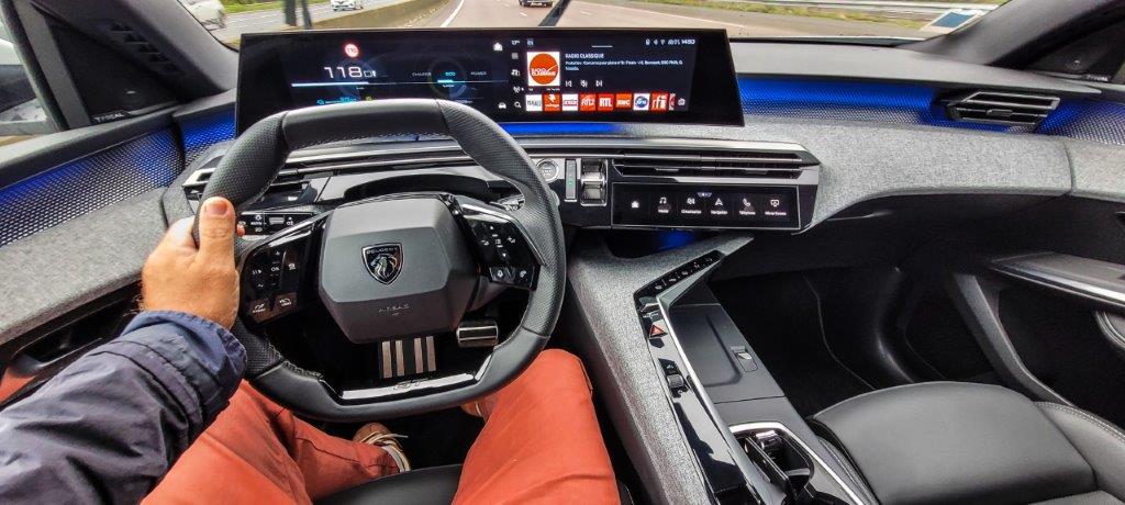 Peugeot nas je već navikao da po otvaranju vrata bivšeg 3008, kao i kod drugih modela kuće, spontano ispustimo zvuk oduševljenja, ali kada se nađe u unutrašnjosti novog čovek prosto zanemi. Dragi Bože pa ovo je pravi „Space Shuttle“ na točkovima, posebno ukoliko je noć te enterijer zablista punim sjajem! Ambijentalno osvetljenje po čitavoj širini komandne table proteže se na vrata i centralnu konzolu, dok „ekrančina“ dužine nekih 70 cm (21 inča) impresionira i formom i grafikom.