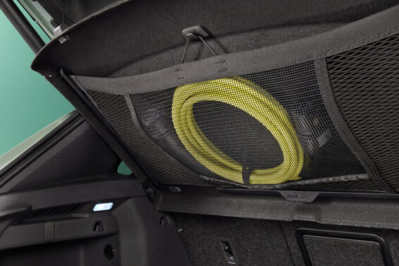 A karakteristika čisto električnog automobila je izdržljiva mreža za odlaganje kabla za punjenje, pričvršćena na dnu prtljažnika.