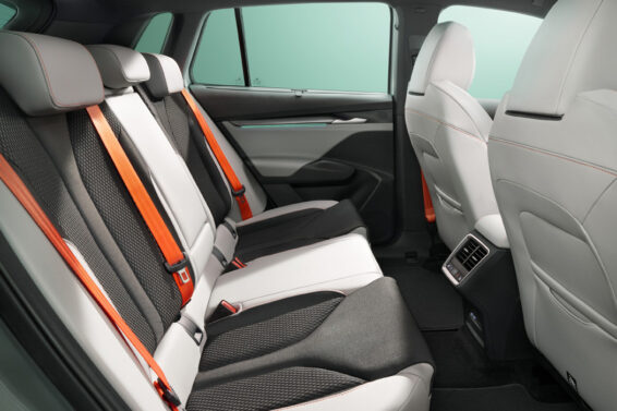 Ali najuočljivija prednost električnog automobila je u međuosovinskom rastojanju: 2.765 mm umesto 2.638 mm za Karoq, a to obećava prostor u kabini. Klirens je 186 mm.