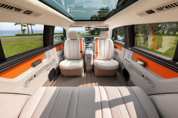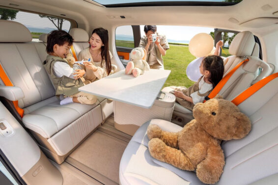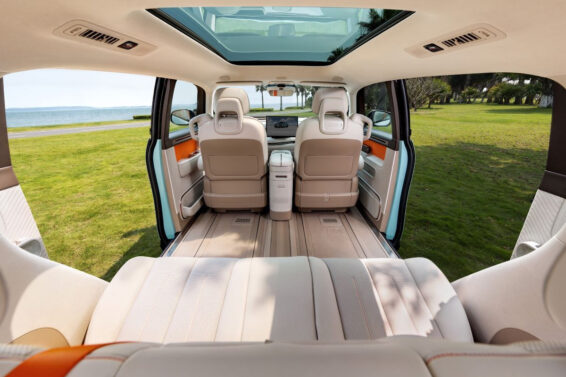 Sa dužinom od skoro 4,7 m, Zeekr Mix je mogao da primi tri reda sedišta, ali ovde postoje samo dva. Ali – prostor i transformacija! Prednja sedišta se mogu okrenuti unazad, a centralna kutija pričvršćena na klizače omogućava ugradnju stola, pretvarajući unutrašnjost Mixa u udoban dnevni boravak. Pored toga, zadnja klupa je opremljena uvlačivim osloncima za noge, tu je i panoramski krov.