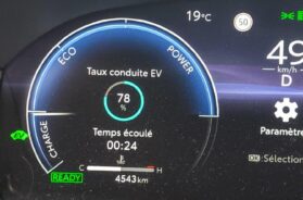 Na struju se može preći tek par kilometara, i to s pero lakim stopalom na gasu i punom baterijom. Pokušah to više puta (100 % električni program se aktivira prekidačem na konzoli pored ručice menjača), samo jednom mi je to pošlo za rukom, prilikom ostalih pokušaja sistem je odbio, uz obrazloženje da je kapacitet baterije nedovoljan.