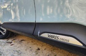 No kako je usko povezan i s Yarisom lice mu deluje nežnije, mekših je linija. Yaris Cross ima i neke dopadljive detalje poput istoimenog natpisa na plastičnim zaštitama na bokovima i proreze od točova uokvirene crnom brut plastikom, dok vožena verzija Hybrid HEV AWD-i poseduje specifične prednje i zadnje branike, što uz velike naplatke od 18 cola i dvobojnu karoseriju (nova boja kod voženog), deluje ubedljivije.