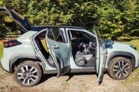 Međuosovinski razmak je dakle neizmenjen, kod oba iznosi 2.560 mm, ali povećano odstojanje od tla za 25 mm (170 mm), daje Yarisu Crossu taj toliko obožavan SUV-ovski izgled. Kao što napisah prilikom prvog susreta s njim, nalazim da ima više vizuelne sličnosti s RAV4-om nego s običnim Yarisom, što se najjasnije vidi na nosaču krova pozadi i svetlima.