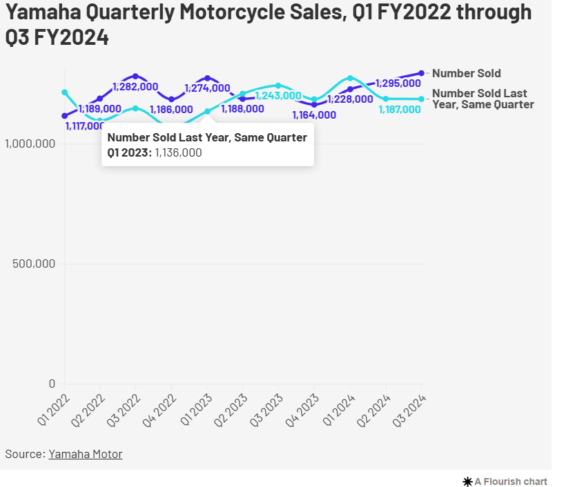 Međutim, kao i uvek, rezultati jednog tromesečja ne mogu da daju pouzdanu sliku trendova, jer vam ne daju nikakav kontekst u smislu tumačenja brojki koje se gledaju. Dakle, izvučeni su podaci o prodaji do prvog tromesečja 2022. godine, i izvedeni su neki grafikoni koji bi trebalo da oslikaju potpuniju sliku o tome gde je Yamaha Motors bila u nedavnoj prošlosti, kao i gde je sada.