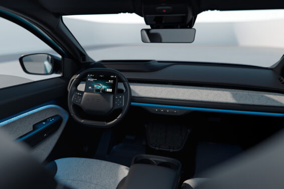 Ako sam Atom njegovi tvorci nazivaju gedžetom, njegov volan je „gedžet u gedžetu“. Sedmoinčni ekran sa rezolucijom 1920×1080 piksela obuhvata sve funkcije upravljanja sistemima u vozilu: klima-uređajem, električnim podešavanjem sedišta i ogledala, muzičkim sistemom, pomoćnim sistemima za vozača, navigacijom… Čak se i režimi rada transmisije mogu menjati preko ekrana, iako za to postoje fizički tasteri na centralnoj konzoli. Gornji deo ekrana je rezervisan za klasične „automobilske“ simbole i informacije, poput brzine i nivoa napunjenosti baterije.