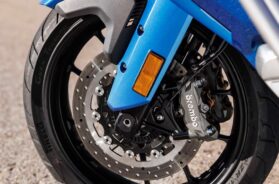 S navedenom potrošnjom od 4,6 litara na prevaljenih stotinu kilometara, to rezultira dometom od preko 500 kilometara. Zadnji amortizer i naopako postavljena vila na prednjoj osovini su delimično podesivi i imaju sličnosti s analognim komponentama marke Showa, ali je nejasno od kog dobavljača zapravo potiču.