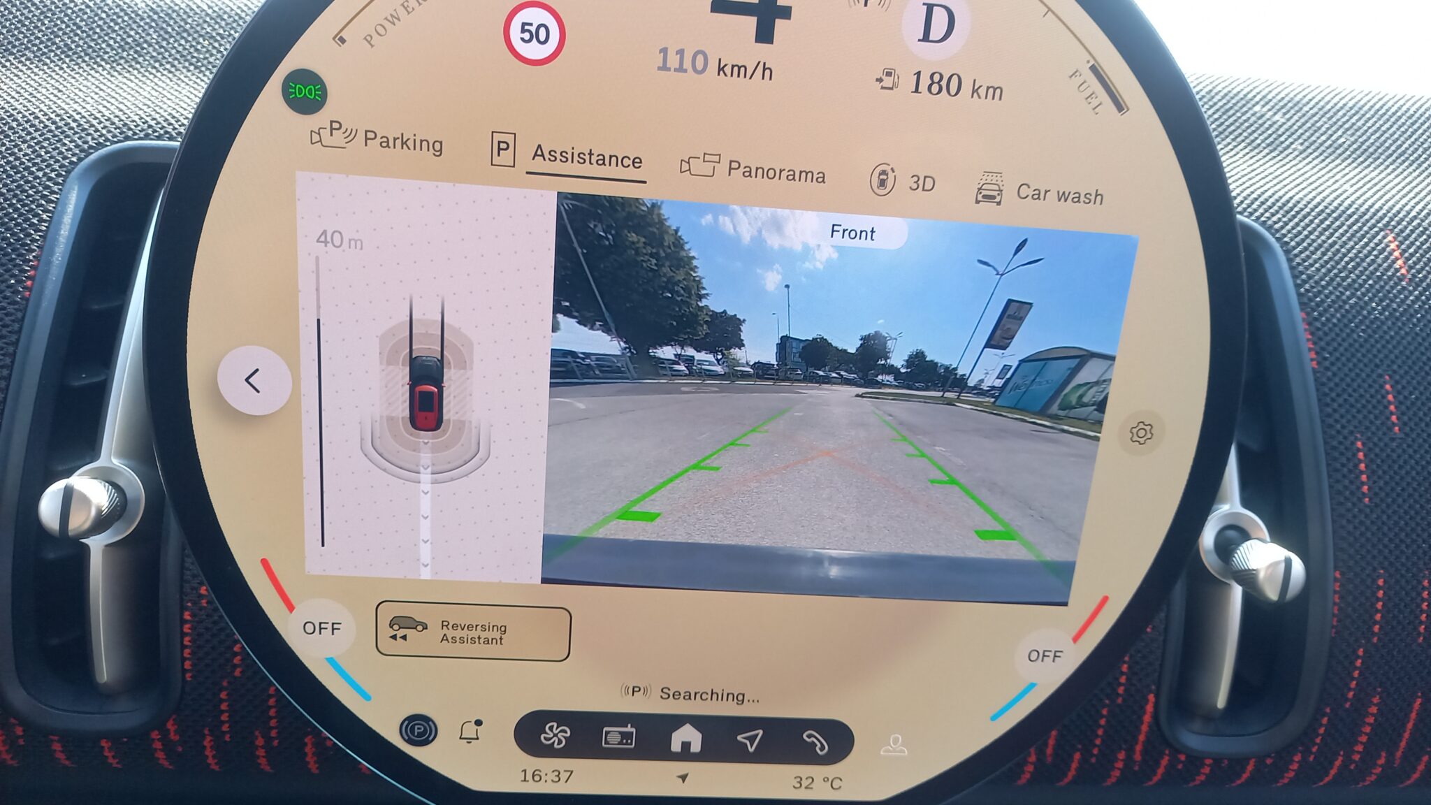 Ali, Parking Asisstant MINI-ja ih prosto „nije video” (a parking je bio poluprazan, do te mere da bi neko tu i „šleper” parkirao). I tokom mog lutanja praznim parkingom sve je ostalo samo na beskonačnom obaveštenju sistema „Searching …“
