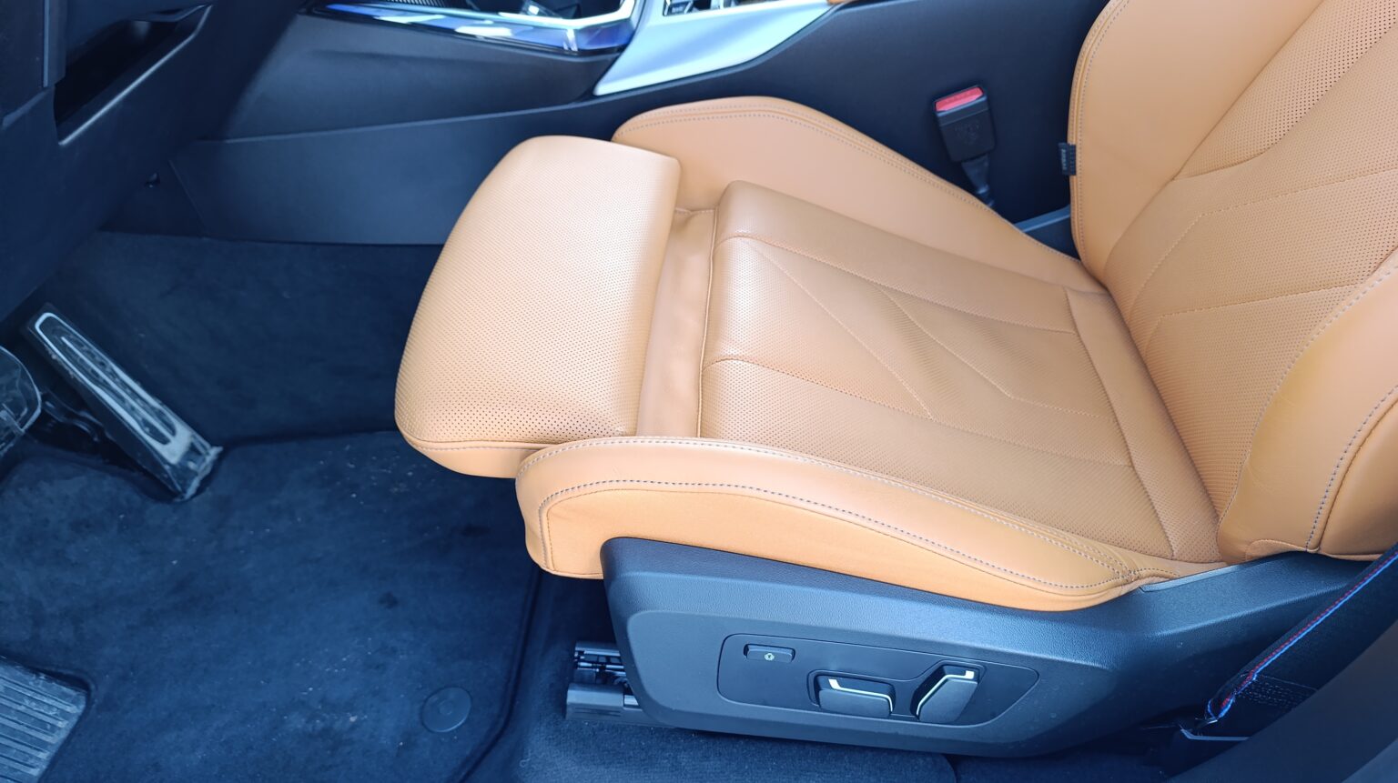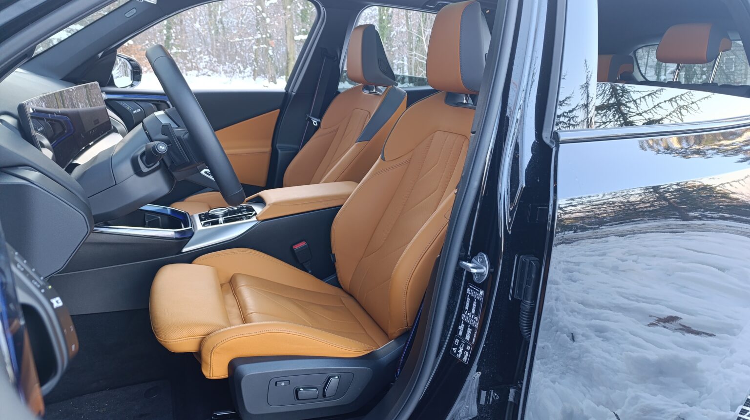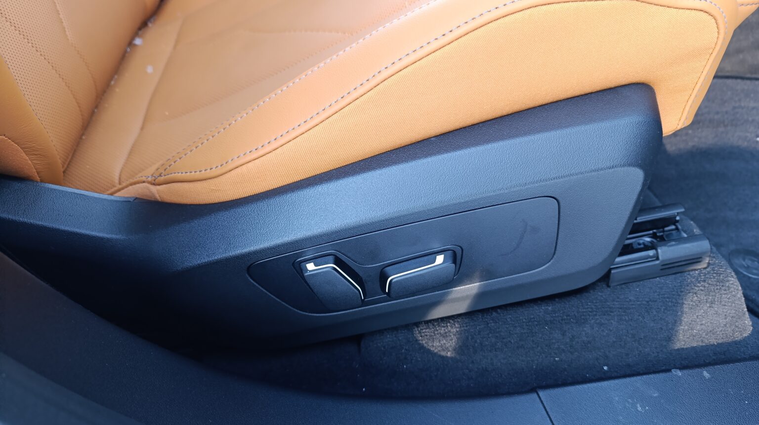 Prednja sedišta su (kao i uvek kod BMW-a) sjajna, blago rečeno. Bar za moje telo, a verujem da će gotovo svaka telesna konstitucija vozača i suvozača naći udoban položaj sedenja u njima. Inače, čak i u osnovnoj izvedbi novi BMW X3 je standardno opremljen sa električnim podesivim i grejanim (prednjim) sportskim sedištima presvučenim sintetičkim materijalom „Econeer“, dok su opciono kao materijal presvlaka sedišta dostupne veštačka koža „Veganza“ ili prirodna „Merino“ koža. Ovo drugo je bilo na našem primerku.