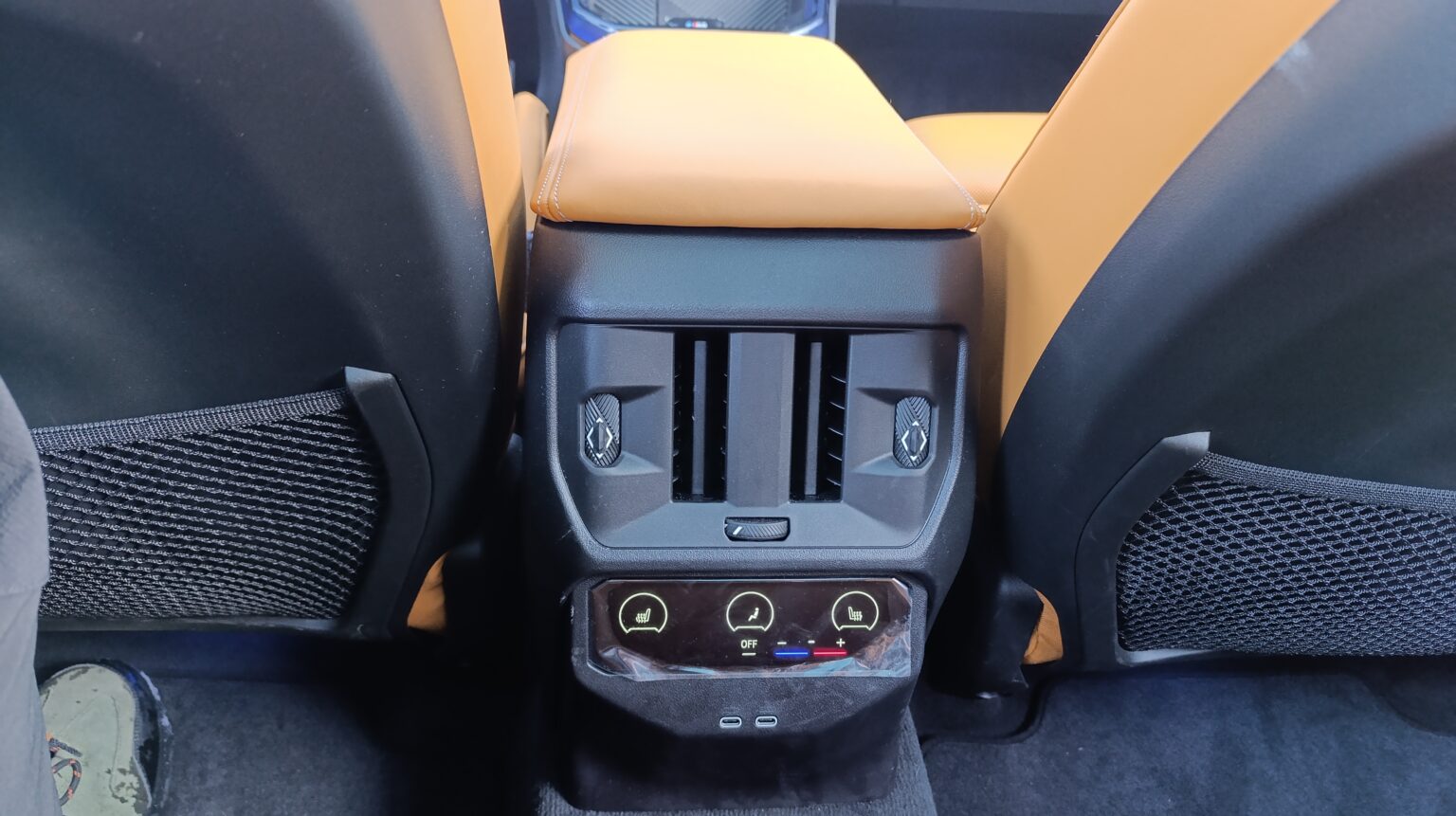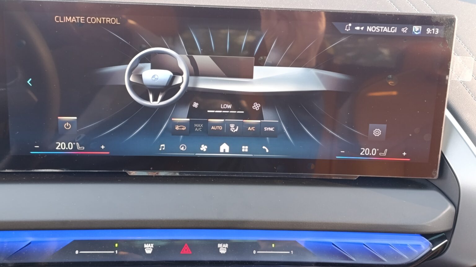 Uređaj za klimatizaciju se kontroliše taktilno, putem ekrana info-zabavnog sistema (s tim da zadata temperatura može da se podešava i bez ulaska u glavni meni klimatizacije), dok su ispod centralnog ekrana taktilne komande za istovremeno uključivanje svih migavaca, brzo odmagljivanje vetrobrana i grejač zadnjeg vetrobrana. Taktilno (i to „klizačem“) se reguliše i nivo otvorenosti (protok vazduha) frontalnih otvora klimatizacije (naravno, za svaki otvor odvojeno), a da ne ogrešimo dušu, postoji mehanički točkić za regulisanje usmerenosti duvaljki (u smislu levo-desno).