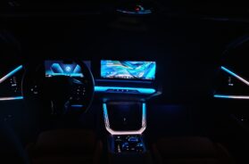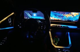Mada, moram da priznam da se za moj ukus malo preteralo sa ambijentalnim osvetljenjem. Nekako mi je suviše napadno, uz napomenu da se postavke boja ne mogu ručno menjati, već se menjaju posredno, izborom nekog od mogućih režima celog vozila (za svaki režim su „vezane“ tačno odredjene boje), a vozač, ako želi, može potpuno da isključi ambijentalno osvetljenje ili da podesi intenzitet na neki niži nivo.