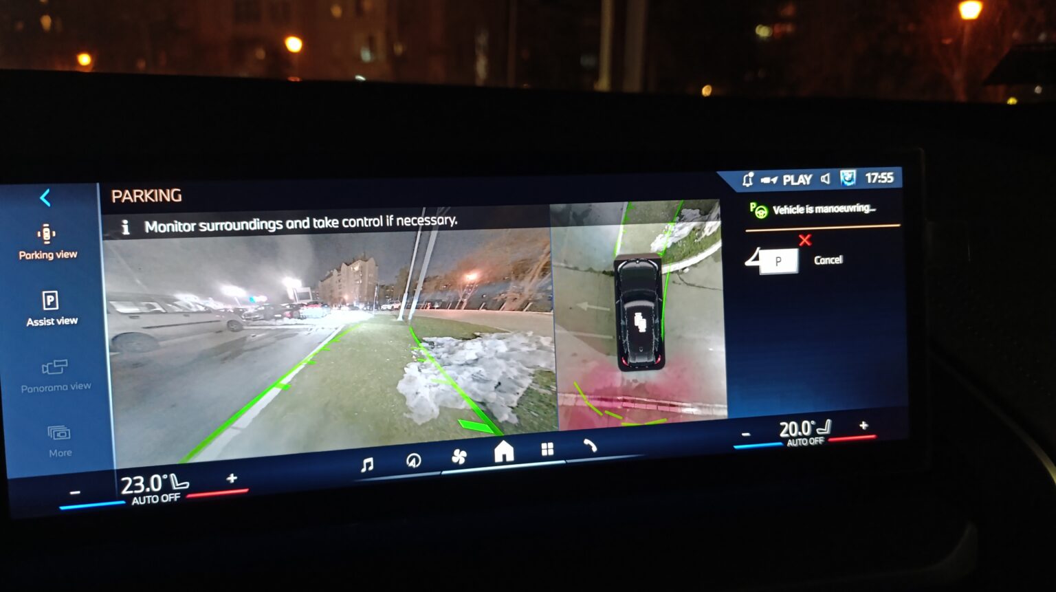 Pri trećem pokušaju, takodje najpre navodno uspešno detektovano parking mesto, pa samostalno manevrisanje, ali sam ja morao da prekinem operaciju, jer je očigledno nešto krenulo naopako. Vozilo je bilo stiglo do kraja (dalje unazad realno nije moglo, a sistem to nije uočio), pri čemu je vozilo bilo veoma loše centrirano (zauzeo je deo dva susedna parking mesta). Treći faul.