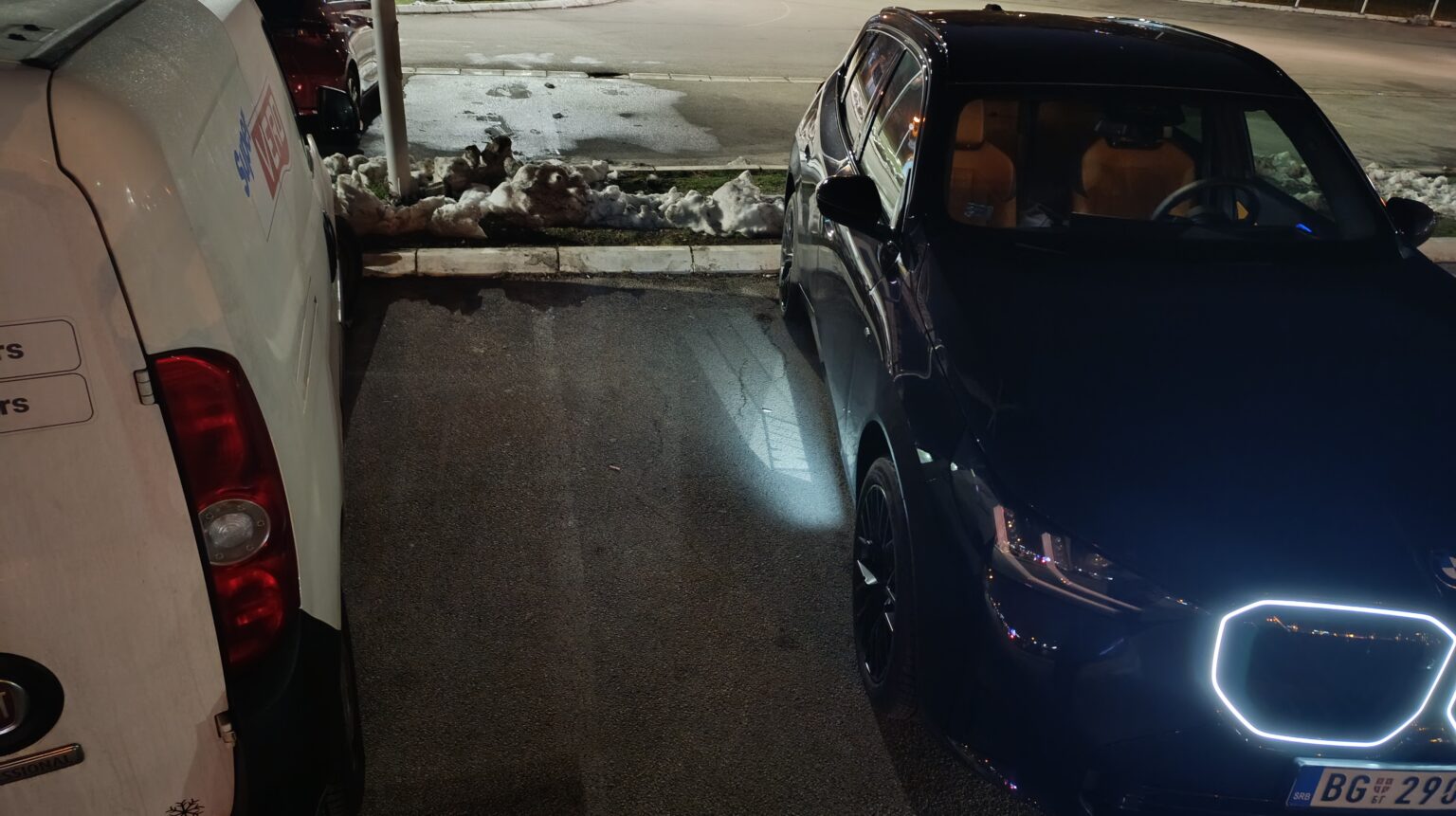Uh, pa uz ovako jasno obeženo parking mesto ( još sa duplim linijama ), znala bi i moja pokojna baba da se parkira, a kamo li „Parking Assistant Professional“ ovog BMW-a 😊
