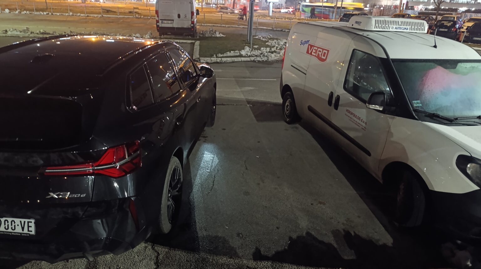 I “pustih” ja njega da manevriše, ali, vrlo brzo sam bio malo zbunjen gde on to ide i šta radi. Jer, nije prošlo mnogo vremena pre nego sam shvatio da je X3 “zapeo” i da “dodaje gas”, da pokušava da se popne na ivičnjak, a kako bi „autonomno“ došao na tu zelenu površinu pored parkinga (na kojoj je čak bilo i zaostalog snega). Pa sam ga tu “stopirao” i kroz smeh se upitao: „Da li si realan, kuda si krenuo?“ 😊 Prvi faul.